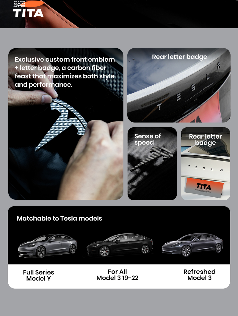 TIA Accessories for Tesla Model 3 And Model Y Emblem Sticker 2PCS/Set Logo Decal