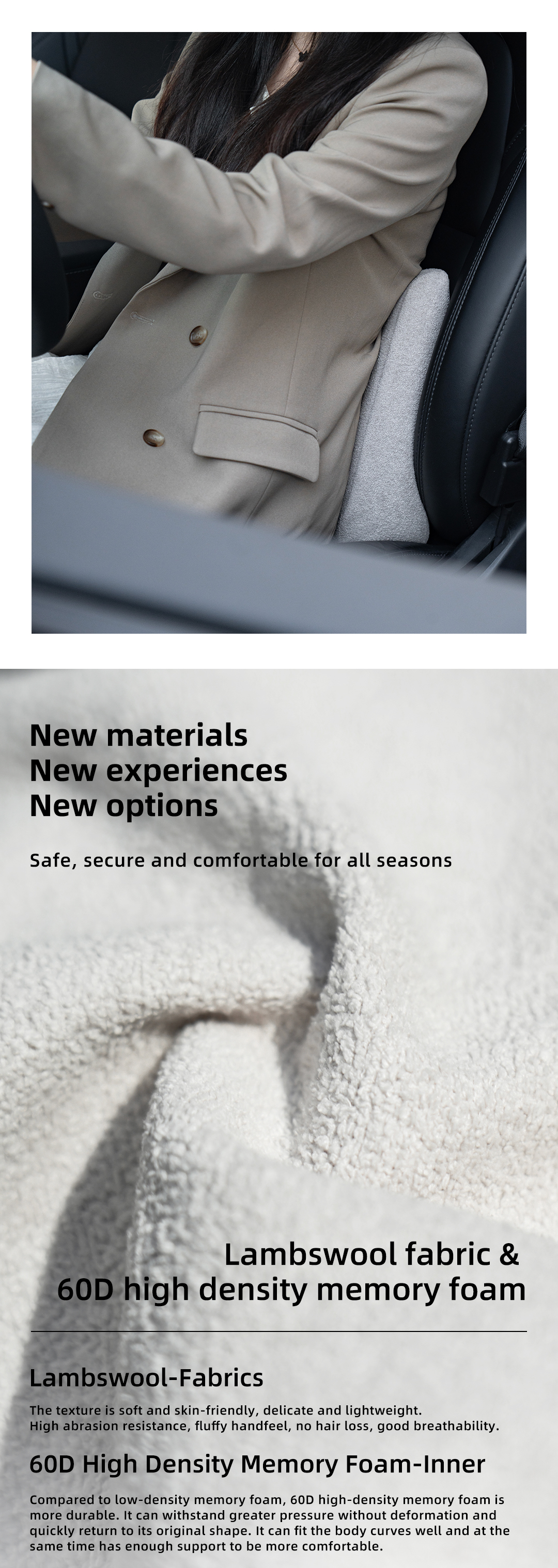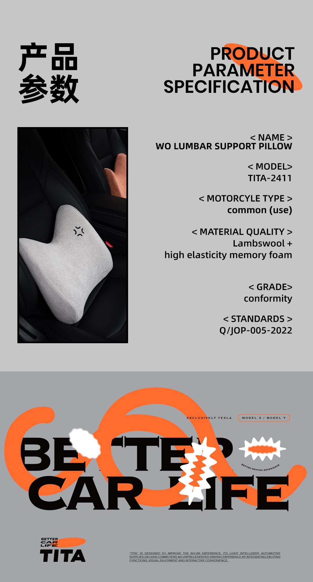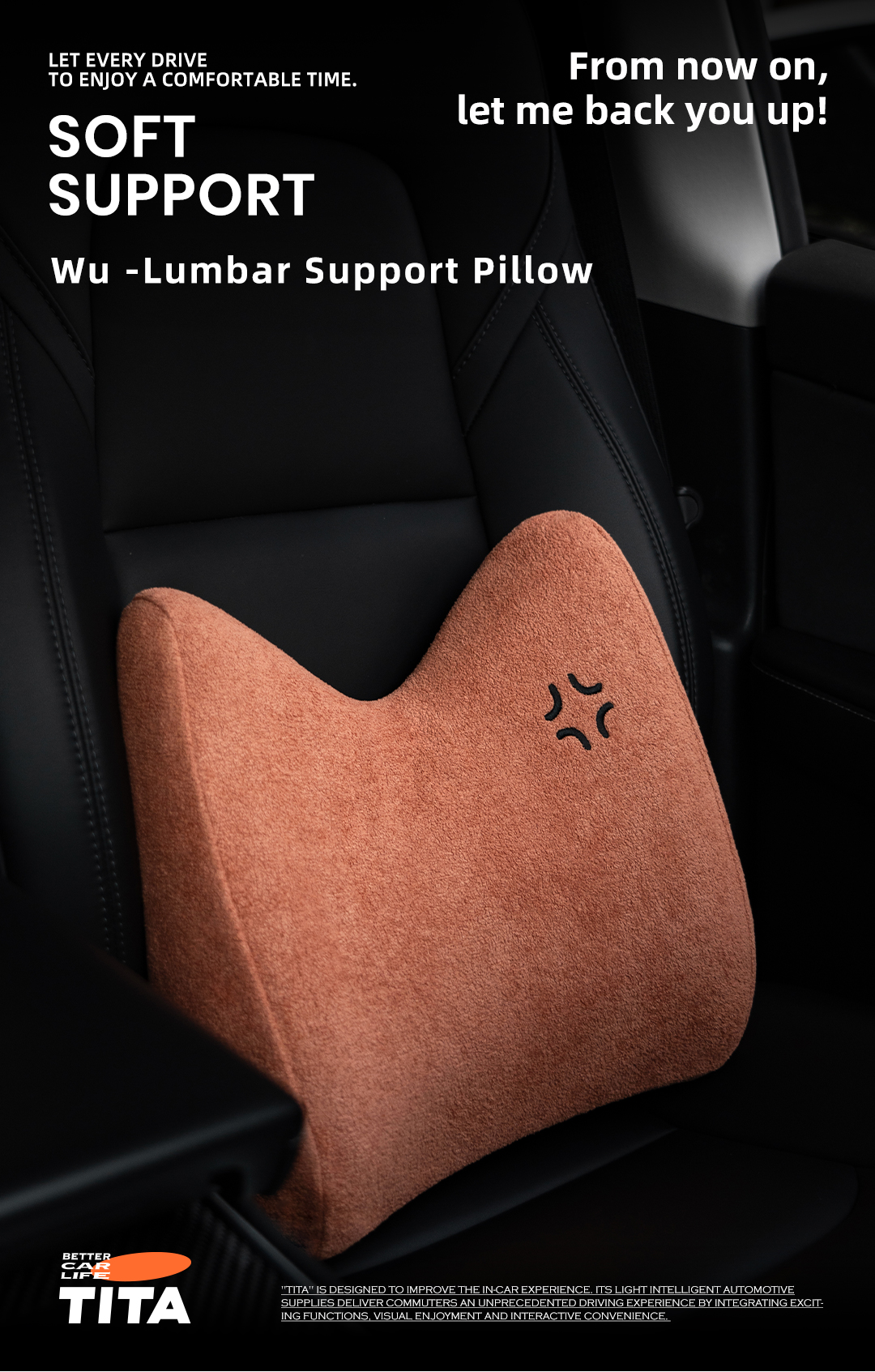 TITA Lumbar Support Pillow for Car/Office Chair, Memory Foam Back Cushion for Car Seat, Back Pain Relief Adjustable Strap and Washable Cover, Lower Back Pillow Fits Most Cars, Trucks