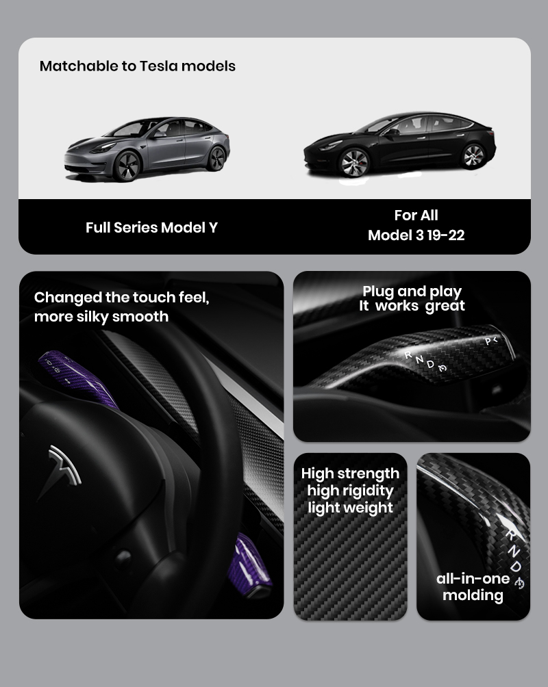 TIA Carbar Steering Lever Cover for Tesla Model 3 And Model Y Carbon Fiber Column Gear Shift Cover Column Shift Paddle Tesla Model Y And Model 3 Accessories ( 2Pcs Sets )