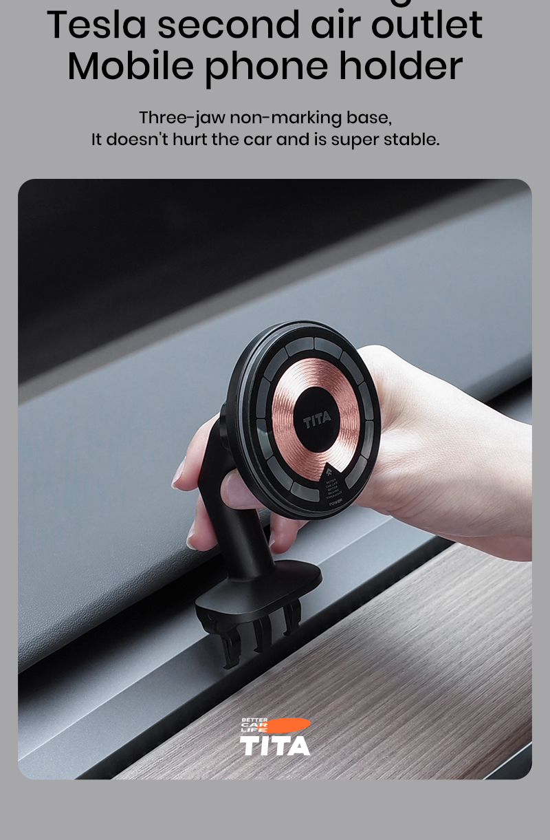 TITA Magnetic Air Vent Phone Charger for Model 3 / Model Y, Tesla Phone Mount Wireless Car Charger for MagSafe Car Mount, Secure Stable Magnetic Phone Holder for Tesla Model 3/Y, Tesla Phone Holder