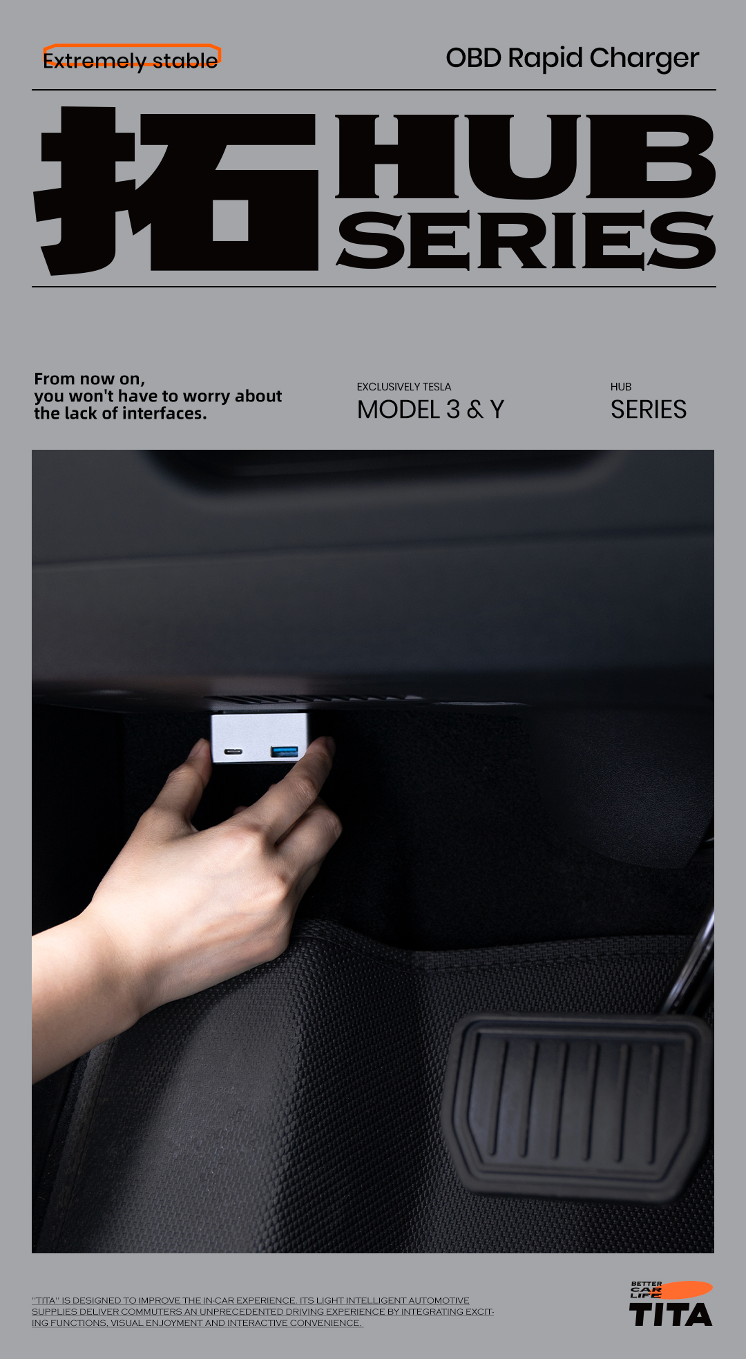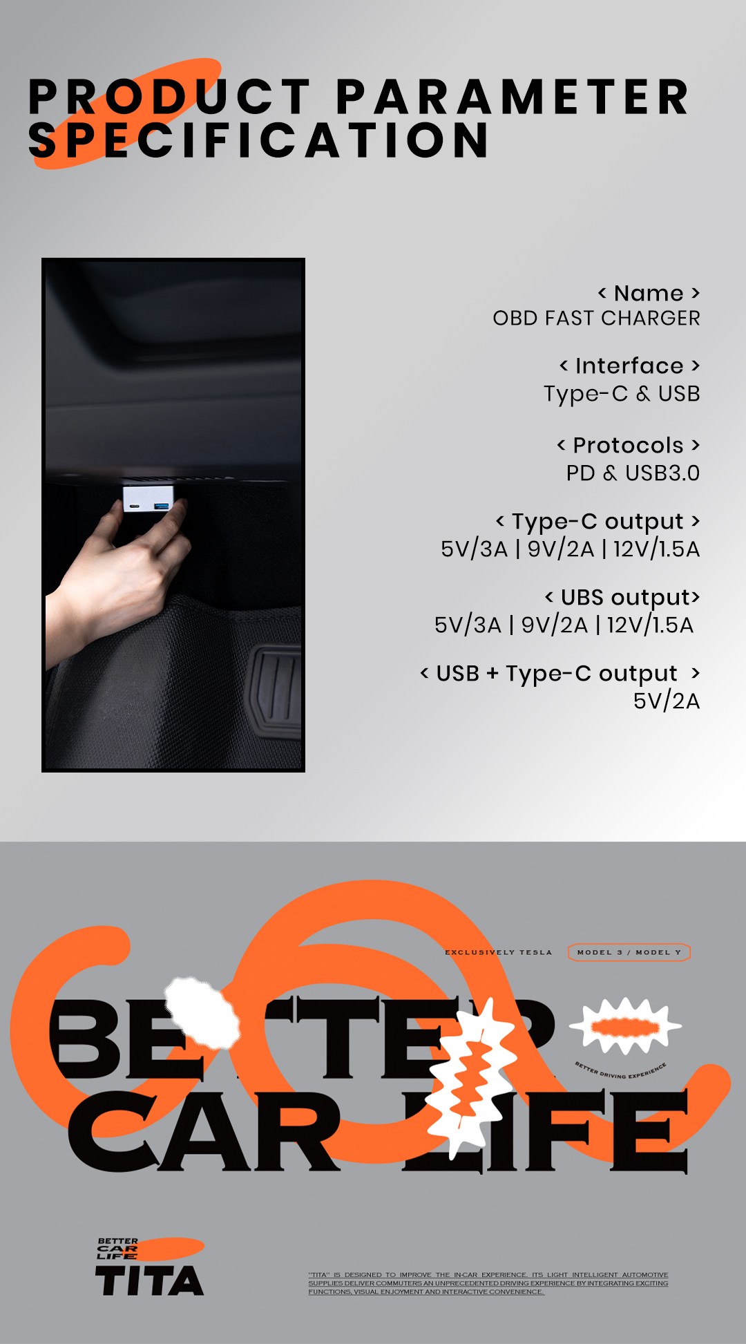 OBD Adapter, TITA Cigarette lighter OBD Interface convert adapter for Tesla Model 3/S/X/Y