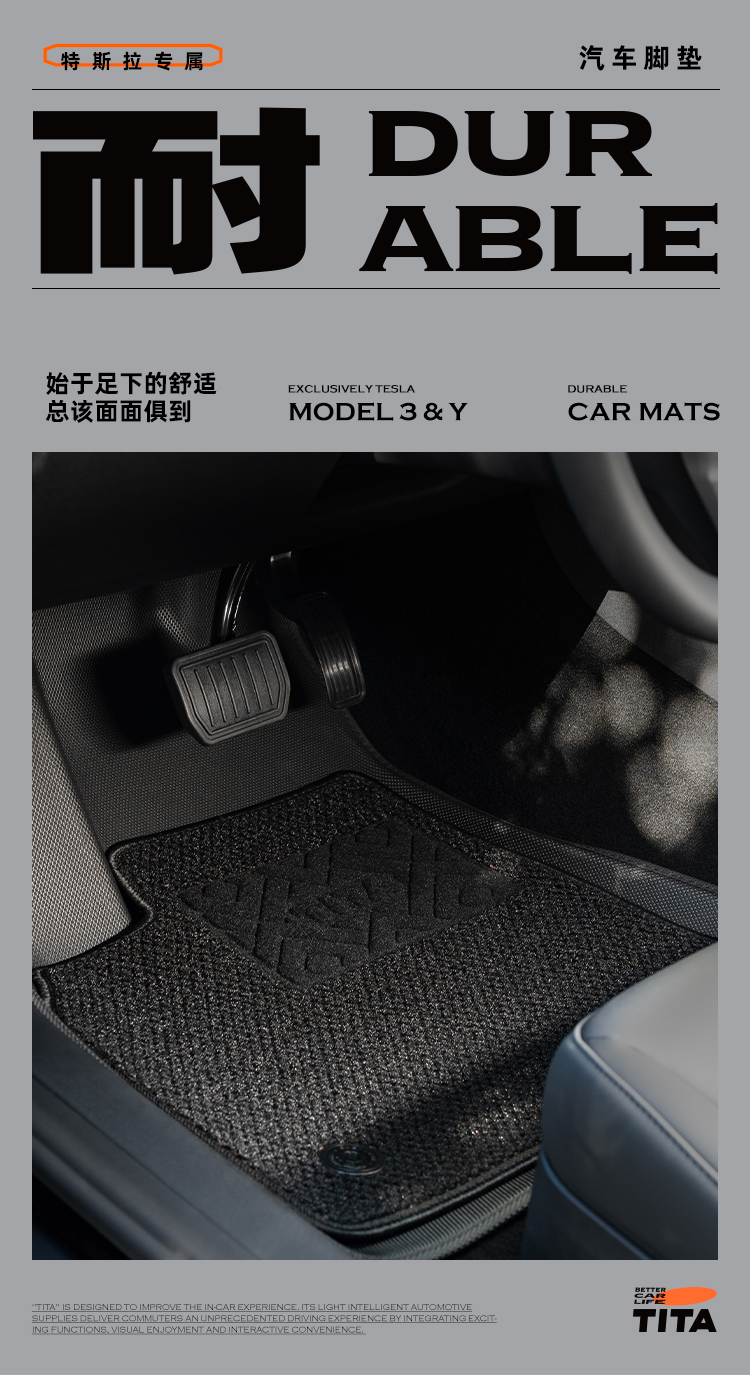 TITA Floor Mats Compatible with Tesla Model 3 And Model Y, Custom Fit Floor Liners for 2025/2024/2023/2022/2021 Tesla Model 3, 1st & 2nd Row All Weather Protection