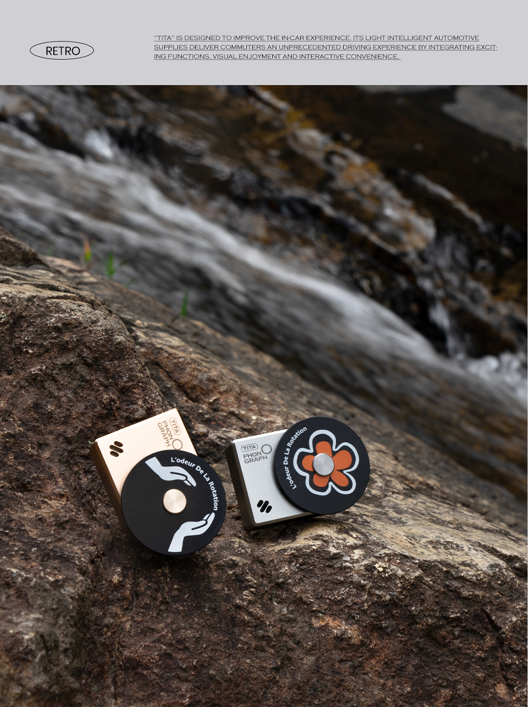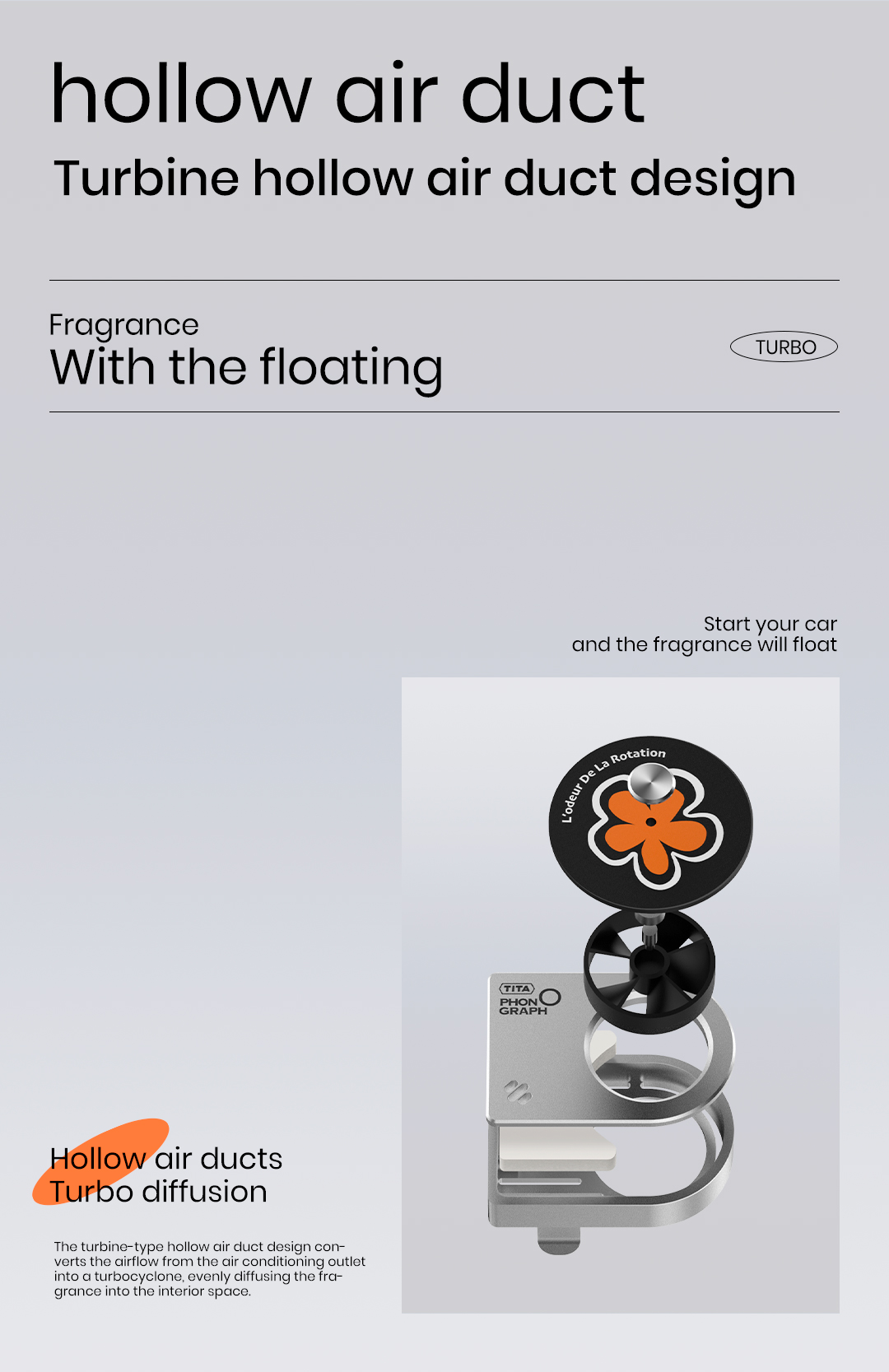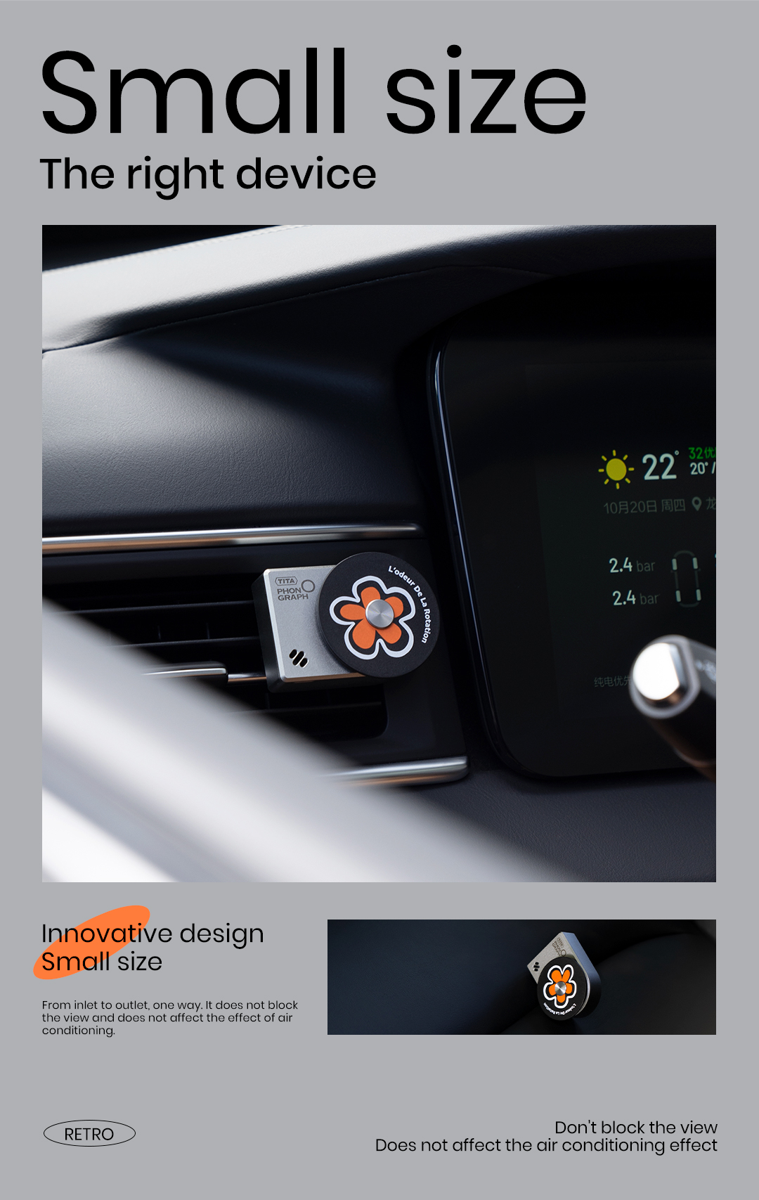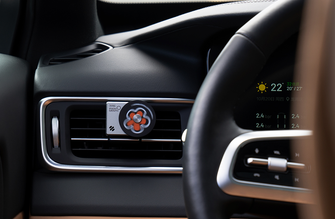 TITA Car Air Freshener - White Peach Scent, Futuristic Style Aluminum Alloy Car Fragrance Diffuser with 2 Refills Designed for Tesla Model Y Model 3