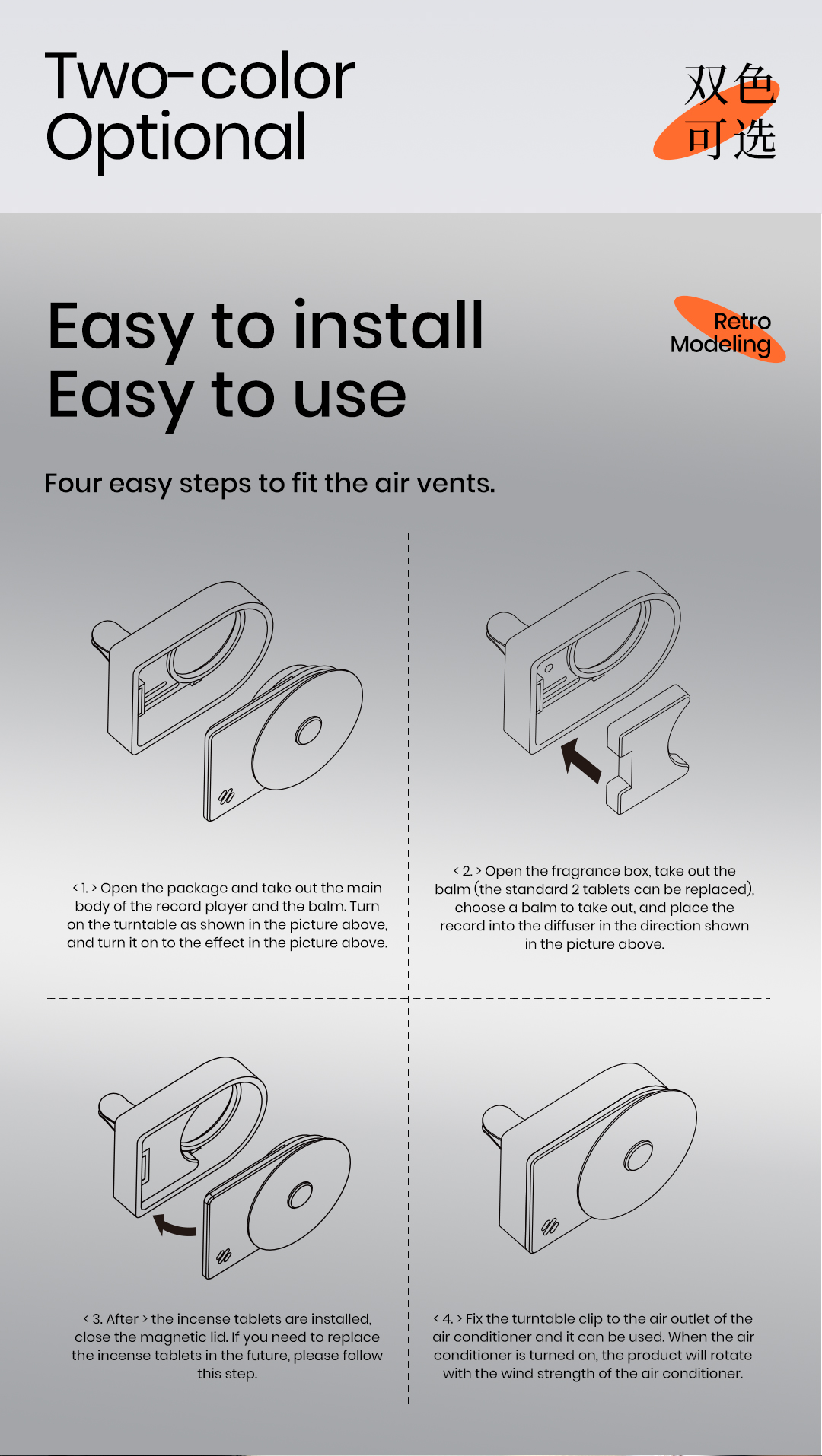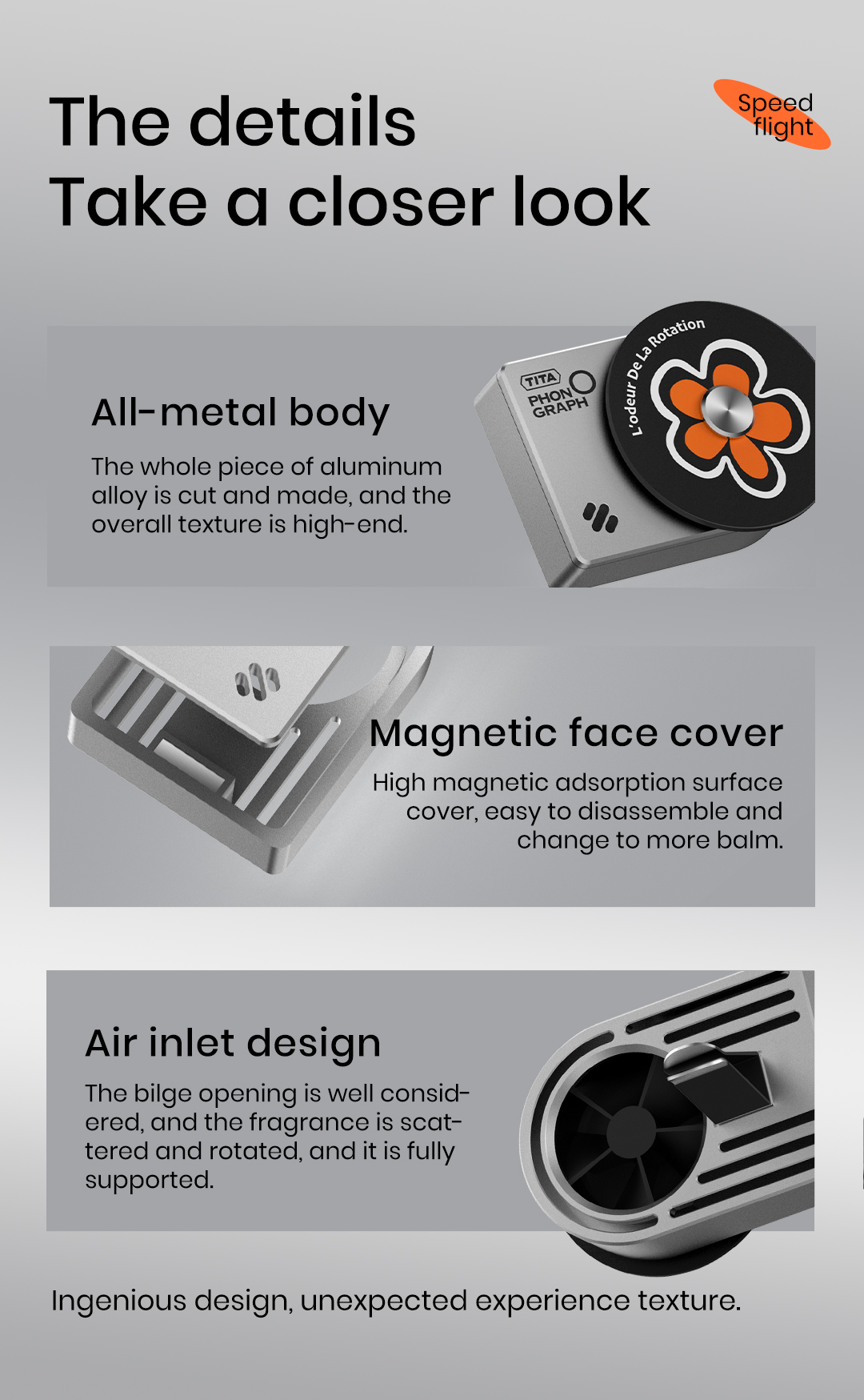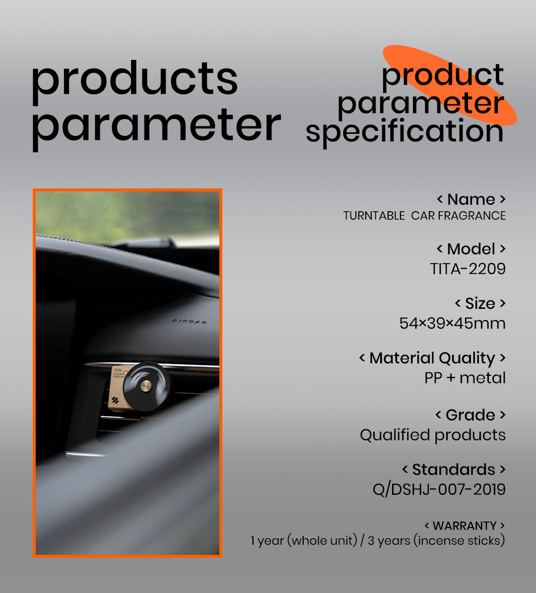 TITA Car Air Freshener - White Peach Scent, Futuristic Style Aluminum Alloy Car Fragrance Diffuser with 2 Refills Designed for Tesla Model Y Model 3